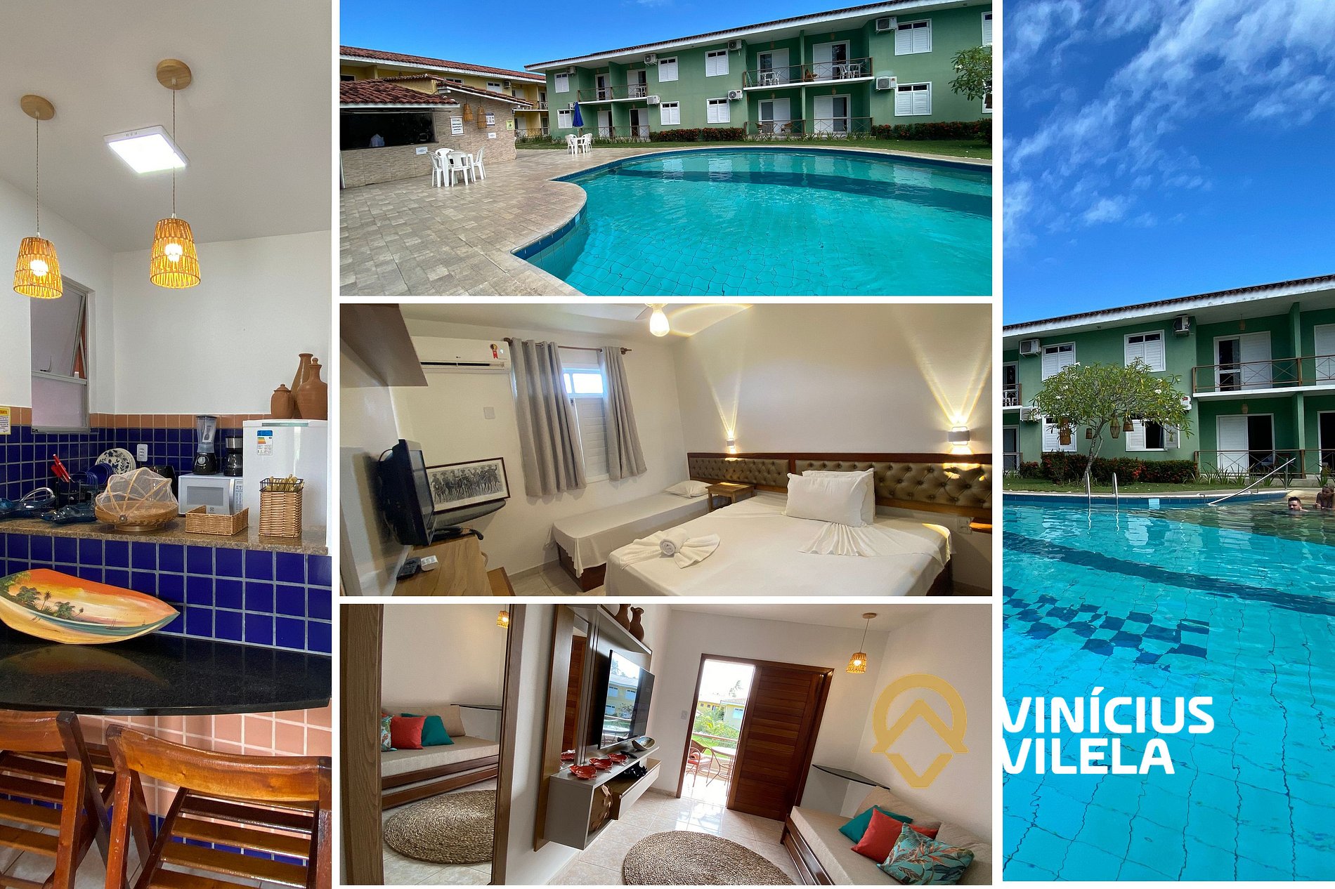 Flat's com 1 quarto, frente praia de Taperapuã, atravessou a rua está na praia, Condomínio Boulevard da Praia conta com piscina, sauna, sala de jogos além de café da manhã como cortesia
